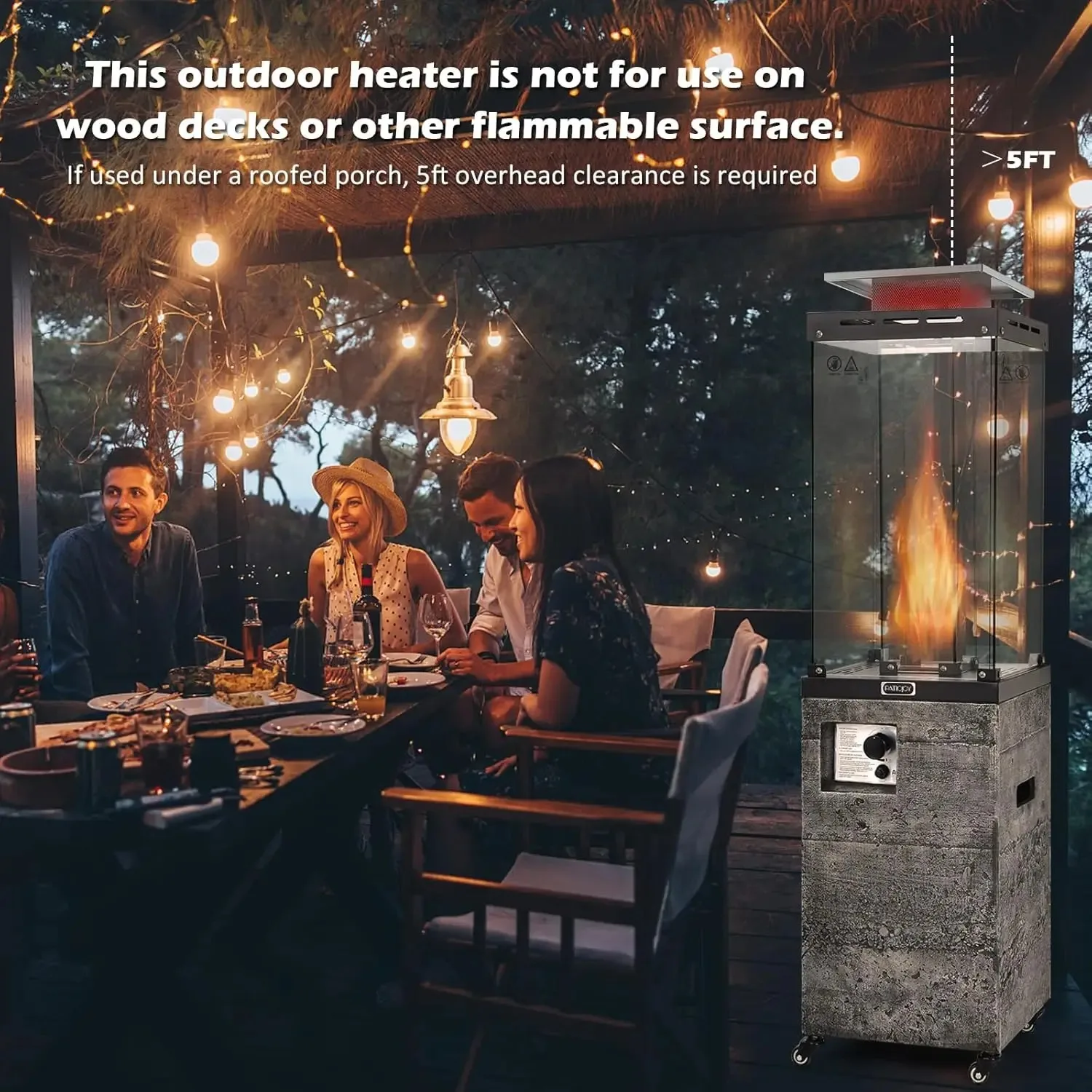 High Power & Wide Heating Range: This 41,000 BTU patio heater with stainless steel burner is CSA certified, providing stable and efficient heating. With heat range reaching up to 13 feet in diameter, this propane gas heater will create warm atmosphere.