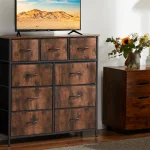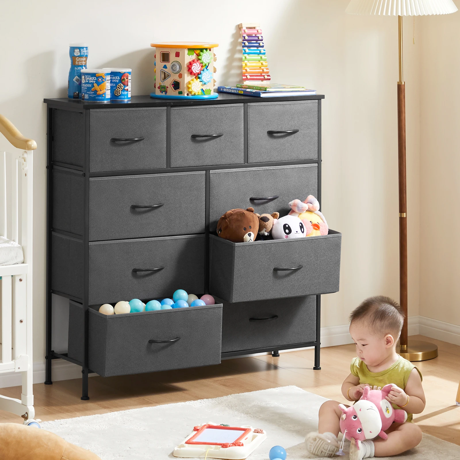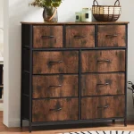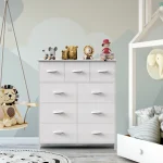 [Please note the full size] This bedroom dresser is equipped with a fabric box, which can save your space. It is an excellent furniture for storing magazines, adult or boys’ and girls’ clothes, children’s toys, etc. The wooden roof has a bearing capacity of up to 66 pounds, which can replace the TV stand. Please confirm the full size of this 9-drawer dresser: 11.81 “D x 39.37” W x 39.96 “H