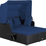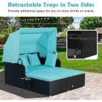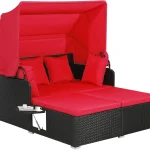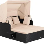【Convenient Folding Tray】This patio wicker daybed also features 10″ x 7.5″ (L x W) retractable trays on two sides, which provide additional space for you to store drinks, snacks, phone and so on. The two side panels can be quickly and easily folded up or down according to your demands.