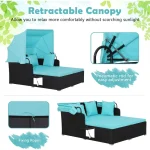 【Retractable & Functional Canopy】As the highlight of this daybed, the retractable canopy allows you to relax more comfortably without scorching sunlight. The pneumatic rod makes the adjustment easy and safe. Furthermore, the fixing ropes are functional to keep the canopy in right place when the canopy is retracted.