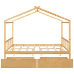Twin Size House Platform Bed with Headboard and Footboard, Roof Design, Natural